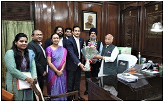 A delegation led by the Advisor FICCIs PSI Committee Ms. Manjari Jaruhar, IPS (Retd) and the Chair Mr. Rituraj Sinha along with few other senior industry leaders and FICCI officials met Mr. Shiv Pratap Shukla, the Honble Minister of State for Finance who looks after the topic of the Goods & Services Tax. The objective of the delegation was to submit a plea to the minister to lessen the 18% Goods & Services Tax (GST) that is being currently levied on the manned guarding and other security services.