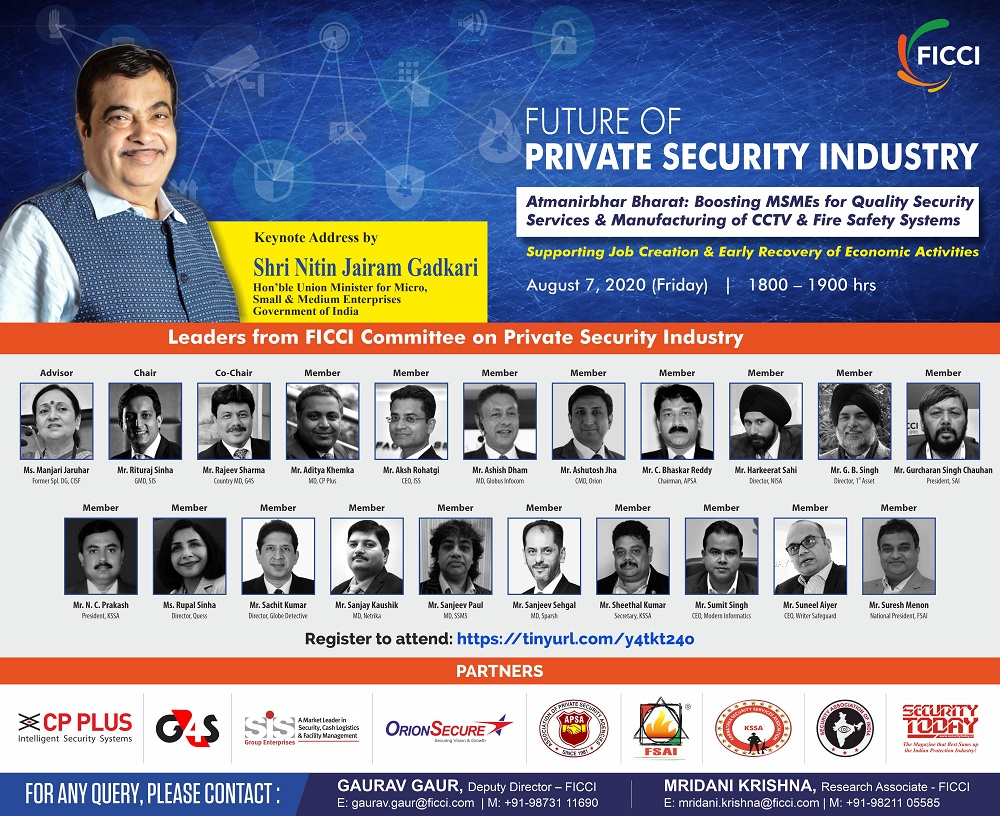 An interaction of leaders from FICCI Committee on Private Security Industry with Shri Nitin Jairam Gadkari, Hon'ble Union Minister for MSMEs, Govt. of India on how Atmanirbhar Bharat Abhiyan could support MSMEs in private security sector for delivering quality services and manufacturing world class equipment & solutions, in addition to supporting job creation & early recovery of economic activities.