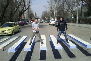 Implementing optical illusions as speed breakers was first used in the US city of Philadelphia in 2008 in the same attempt to combat aggressive driving. 'The goal is to change the mind-set,' Philadelphia's chief traffic engineer Charles Denny said. 'The driver sees this in the roadway, and they think that it's some protrusion up out of the roadway, and not a perfectly flat surface. So they slow down before they drive over it.'